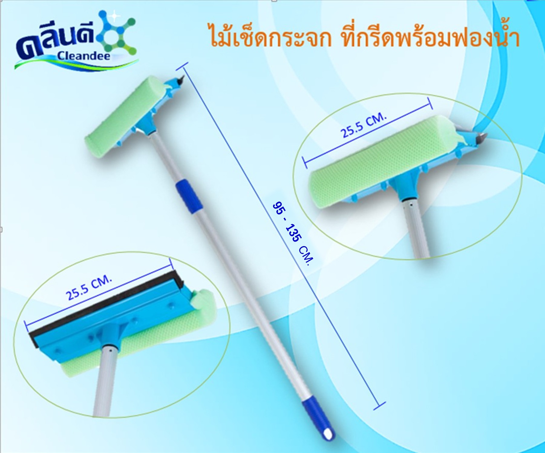 – ไม้เช็ดกระจกด้ามปรับ 2 ระดับปรับระดับ ยาว 95 -135 เซนติเมตร